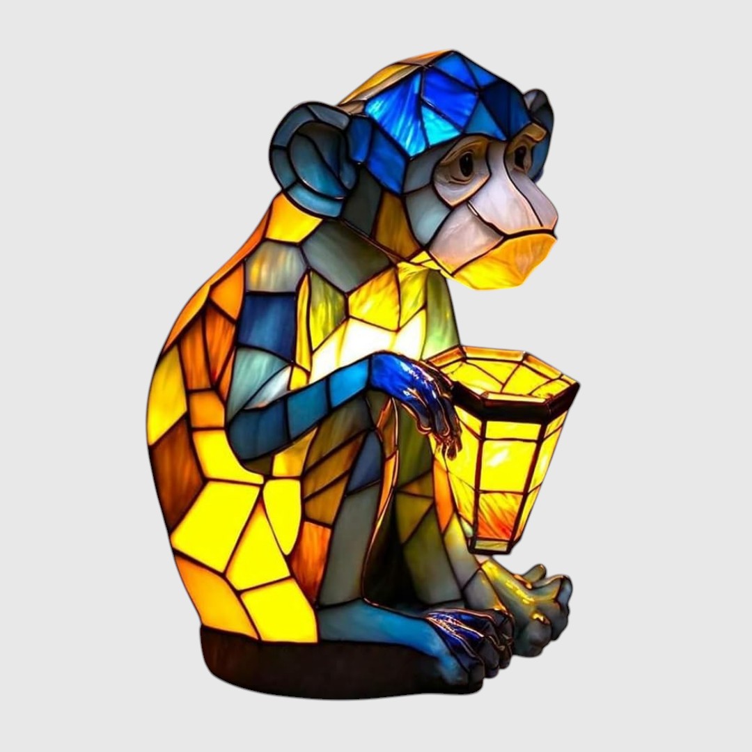 Žltý sklenený opičák s LED svetlom