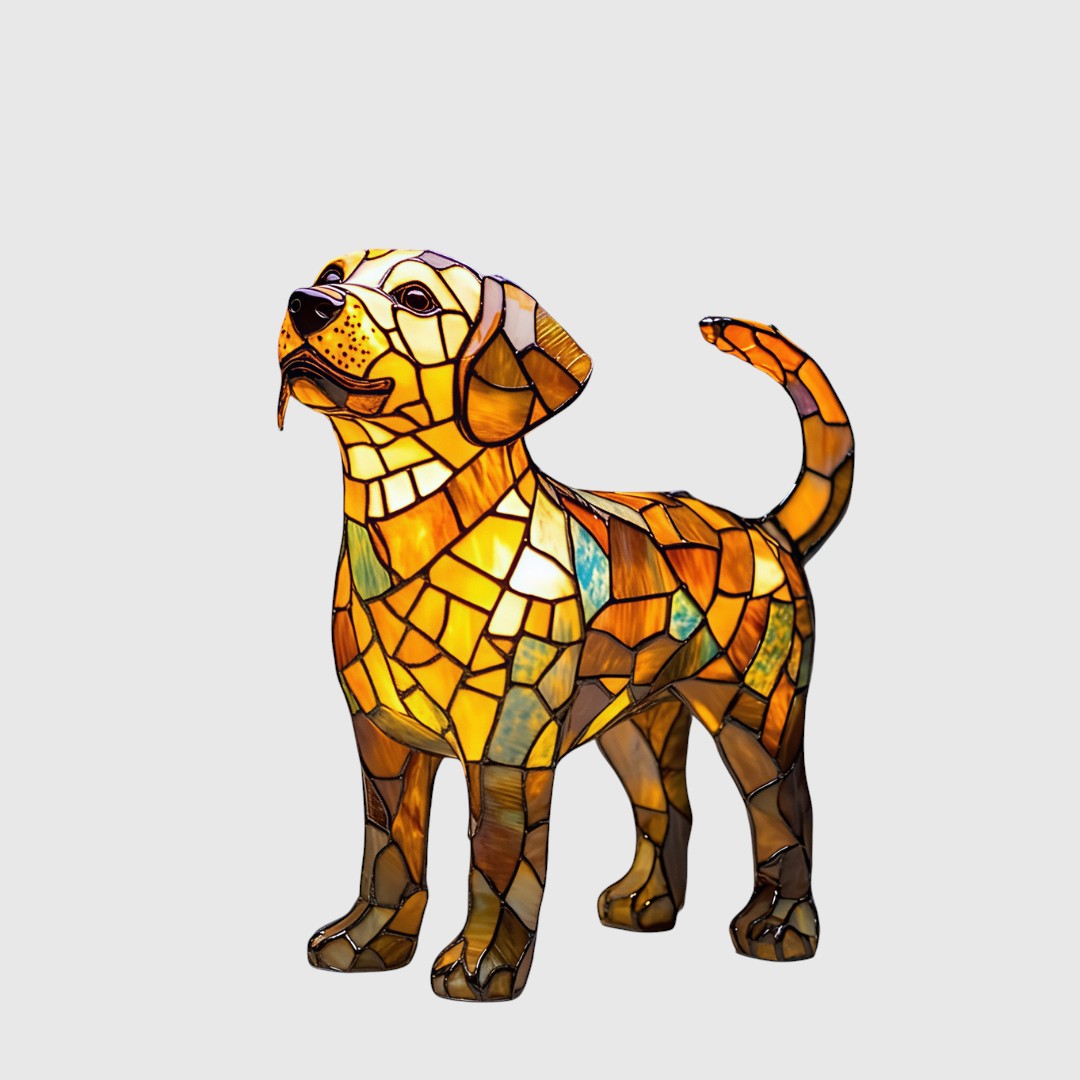 Žltá sklenená lampa s dizajnom šteniatka Beagle