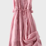 Elegantné dlhé šaty v jemnej zelenej farbe vyžarujú sviežosť a prirodzenú eleganciu. S ľahkým a voľným strihom jemne objímajú siluetu a zaručujú jedinečné pohodlie po celý deň.