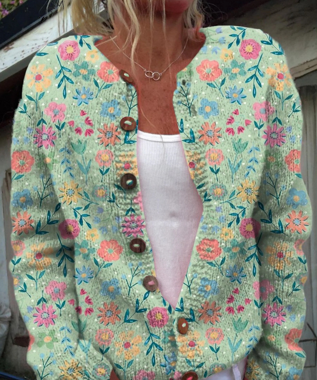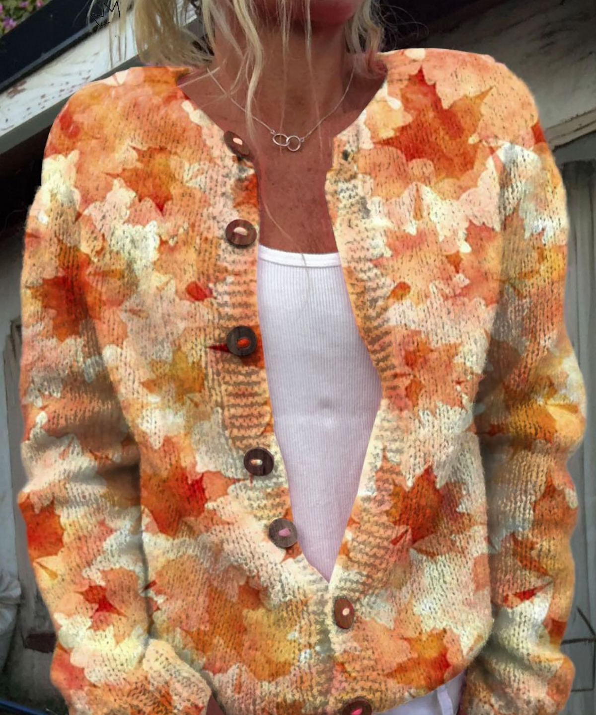 Clémence™ | Cardigan Listy Jesene S Gombíkmi
