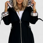 Elegantný a funkčný kabát s integrovanou kapucňou, dvoucestným predným zipsom a vreckami s chlopňou pre bezpečné uloženie nevyhnutností. Príjemná, odolná tkanina zvládne každodenné nosenie, zatiaľ čo nastaviteľný pás a remienky na manžetách vám umožnia upraviť siluetu podľa potreby. Podšívka s klasickým vzorom dodáva nenápadnú sofistikovanosť. Ideálne do práce, do mesta aj na cesty.