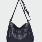 Praktická crossbody taška v čiernej farbe s mäkkou textúrou a funkčným dizajnom. Disponuje niekoľkými vonkajšími vreckami so zipsom, ktoré ponúkajú jednoduchú organizáciu a rýchly prístup k nevyhnutnostiam. Nastaviteľný popruh umožňuje pohodlné nosenie po celý deň, čo z nej robí ideálnu voľbu pre každodenný neformálny vzhľad.
