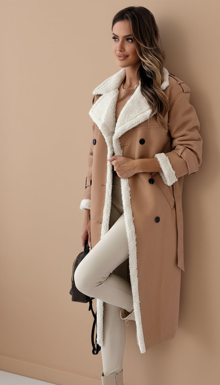 Ideálny kabát na chladné dni: kombinuje trench dizajn s jemnou a teplou podšívkou, ktorá vás obklopí komfortom bez obetovania štýlu.