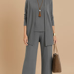 Obnovte svoj šatník so Súpravou Bianca: dva všestranné kusy, ktoré štýlovo vyzerajú a extra kardigán na zvýraznenie akéhokoľvek vzhľadu.