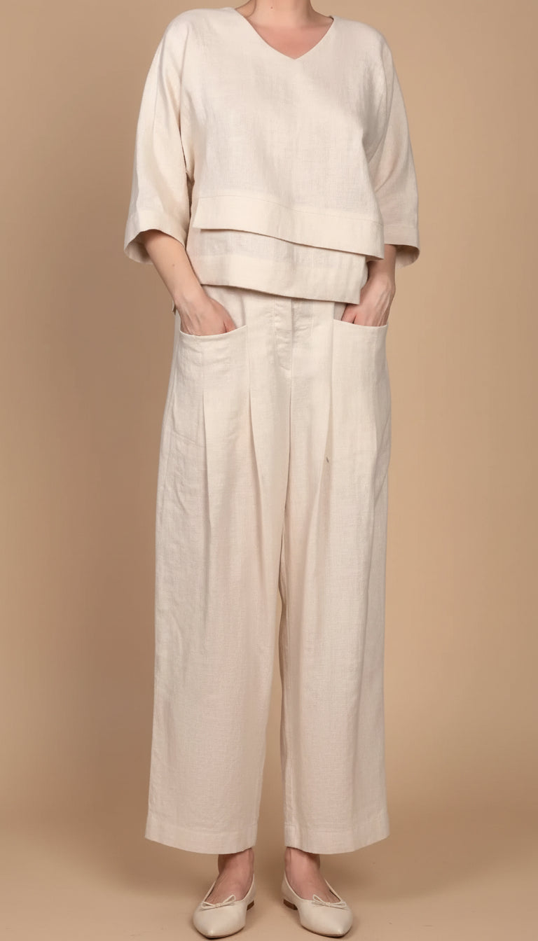 🧶 Tkanina z bavlny a ľanu s jemným dotykom, príjemná a pohodlná počas hodín.