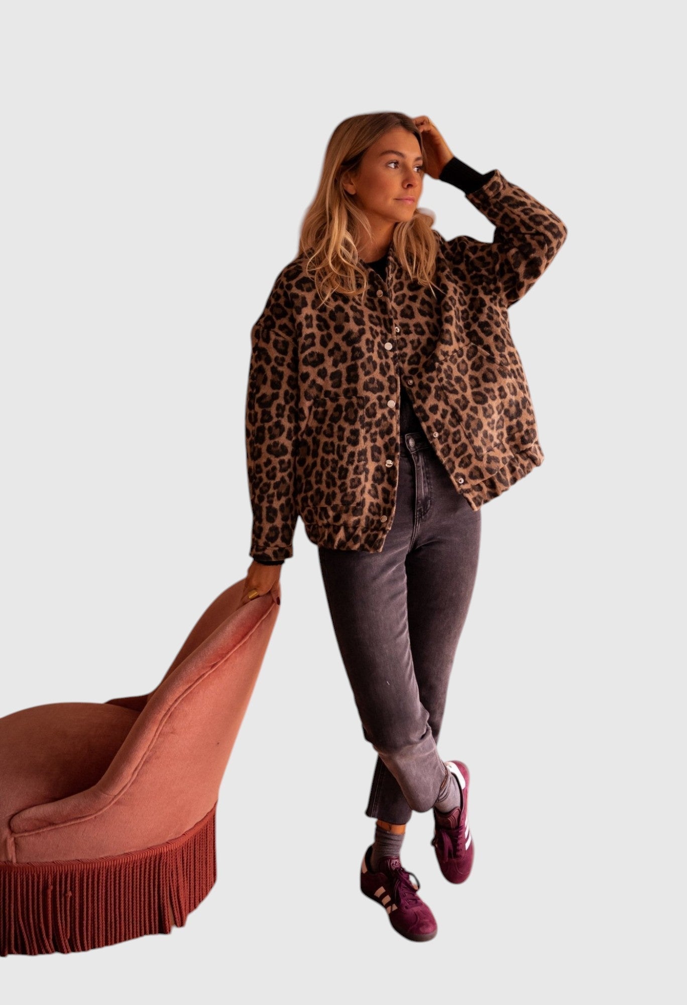Urobte odvážny dojem s trendovou bundou Charlene, dokonalou kombináciou módy a pohodlia. Tento štýlový kúsok s leopardím potlačou je ideálnym doplnkom vášho šatníka. Či už zvyšujete úroveň ležérneho vzhľadu alebo robíte módne vyhlásenie, bunda Charlene sa hodí na akúkoľvek príležitosť. Je ľahká, pohodlná a univerzálna. Must-have pre módne ženy!