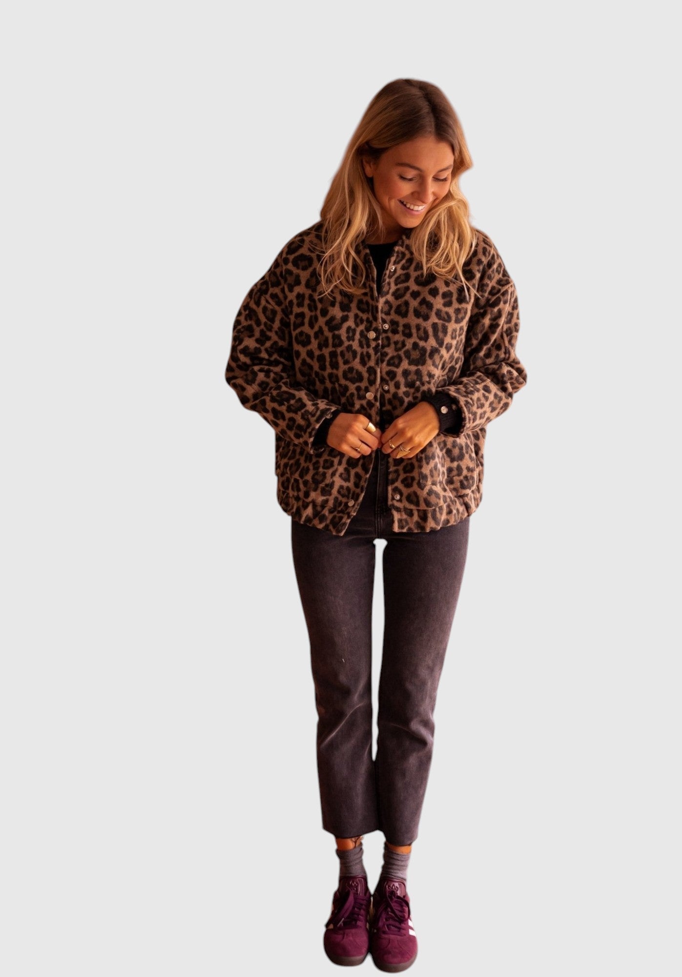 Urobte odvážny dojem s trendovou bundou Charlene, dokonalou kombináciou módy a pohodlia. Tento štýlový kúsok s leopardím potlačou je ideálnym doplnkom vášho šatníka. Či už zvyšujete úroveň ležérneho vzhľadu alebo robíte módne vyhlásenie, bunda Charlene je vhodná na akúkoľvek príležitosť. Je ľahká, pohodlná a univerzálna. Must-have pre módne ženy!