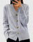 Pletený kardigan s výstřihem do V a mírně volným střihem. Žebrované lemy na rukávech a spodním okraji zajišťují stabilní tvar, zatímco zapínání na kovové knoflíky ve tvaru srdce dodává výrazný, ale čistý detail. Noste otevřený jako vrchní vrstvu nebo zapnutý jako svetr – od ležérního stylu až po kancelář.