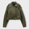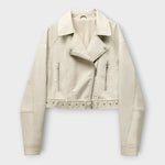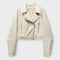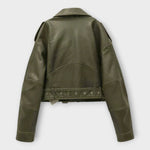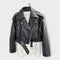 Moderná Krátka Kožená Bunda s Pásom a Vytříbenou Estetikou