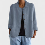 Kabát v štýle košele Sofia je ideálny kúsok na dni, keď sa počasie mení. Vďaka svojmu ľahkému dizajnu ponúka tento kúsok extra pohodlie, zatiaľ čo ti dáva plnú slobodu vytvárať všestranné a štýlové outfity. Môžeš ho nosiť rozopnutý cez blúzku pre uvoľnený vzhľad, alebo zapnutý ako košeľu pre formálnejší look.