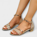 • Dizajn: Zlaté akcenty, otvorené, nastaviteľné remienky