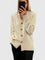 Pletený kardigan s výstrihom do V a mierne voľným strihom. Hladké lemy na rukávoch a spodnom okraji zabezpečujú stabilný tvar, zatiaľ čo zapínanie na kovové gombíky v tvare srdca dodáva výrazný, ale čistý detail. Noste otvorený ako vrchnú vrstvu alebo zapnutý ako sveter – od ležérneho štýlu až po kanceláriu.