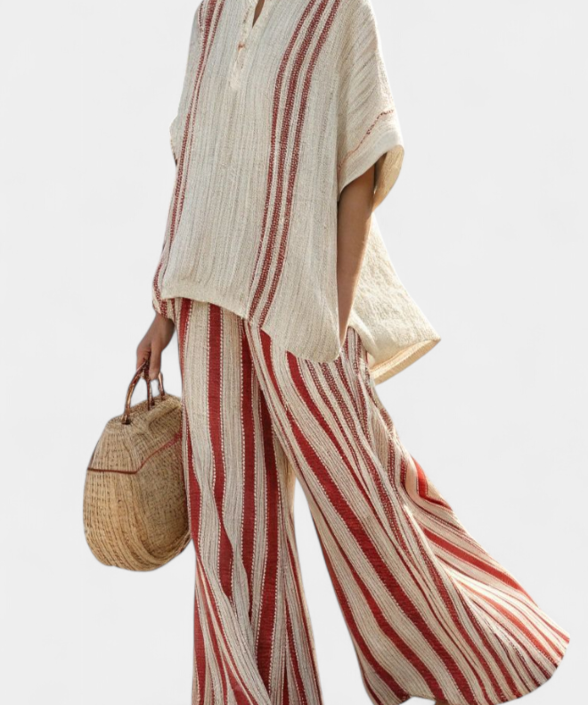 Úchvatný dvoudílný kostým Daisy s červenými pruhy v přírodní textuře