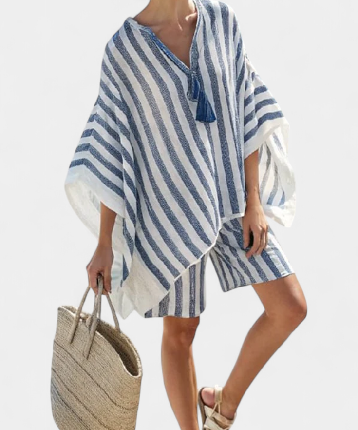 Sada pruhovaných Nancy s oversized tričkom a elegantnými šortkami