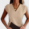 Tento voľne strihaný dámsky top s krátkymi rukávmi a V-výstrihom je perfektnou voľbou pre uvoľnené letné dni. Voľný strih poskytuje slobodu pohybu, zatiaľ čo krátke rukávy a elegantný V-výstrih zaisťujú príjemný pocit pri nosení. Nech už k šortkám, džínsom alebo sukniam – tento top sa hodí k akémukoľvek voľnočasovému vzhľadu.