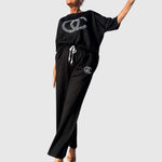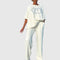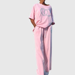 Objavte túto pohodlnú dvojdielnu súpravu, ktorá kombinuje jednofarebnú blúzku s voľnými nohavicami a tak spája komfort a štýl. Nadčasový dizajn umožňuje nosiť súpravu počas celého roka – buď samostatne, alebo dohromady.