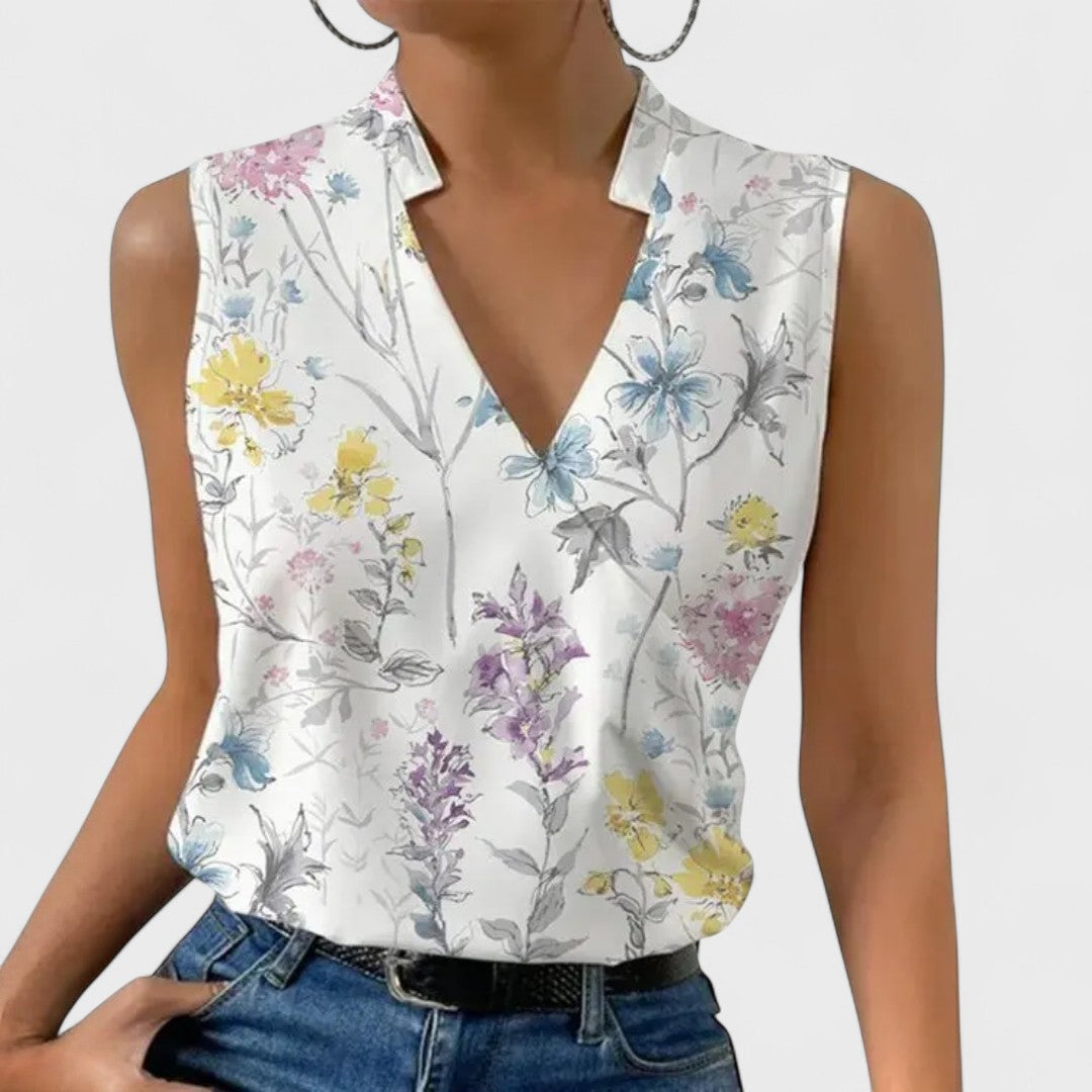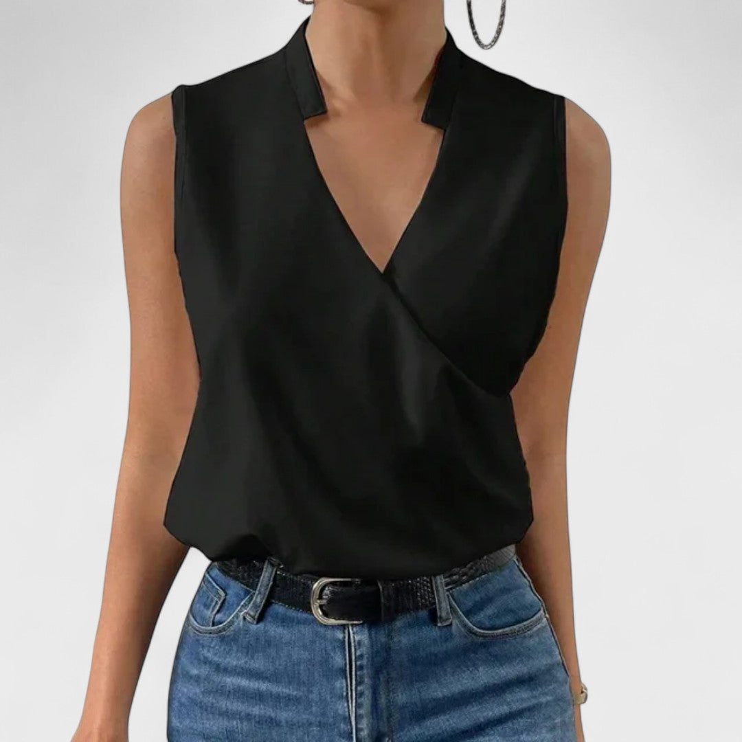 Tento ľahký a mäkký top s V-výstrihom je ideálnou voľbou pre váš letný šatník. Vďaka svojmu uvoľnenému a nadčasovému dizajnu sa hodí na každodenné nosenie. Voľný strih a tenký materiál zabezpečujú maximálny komfort a priedušnosť aj v tých najteplejších dňoch, zatiaľ čo V-výstrih dodáva celkovému vzhľadu ženský a elegantný nádych.
