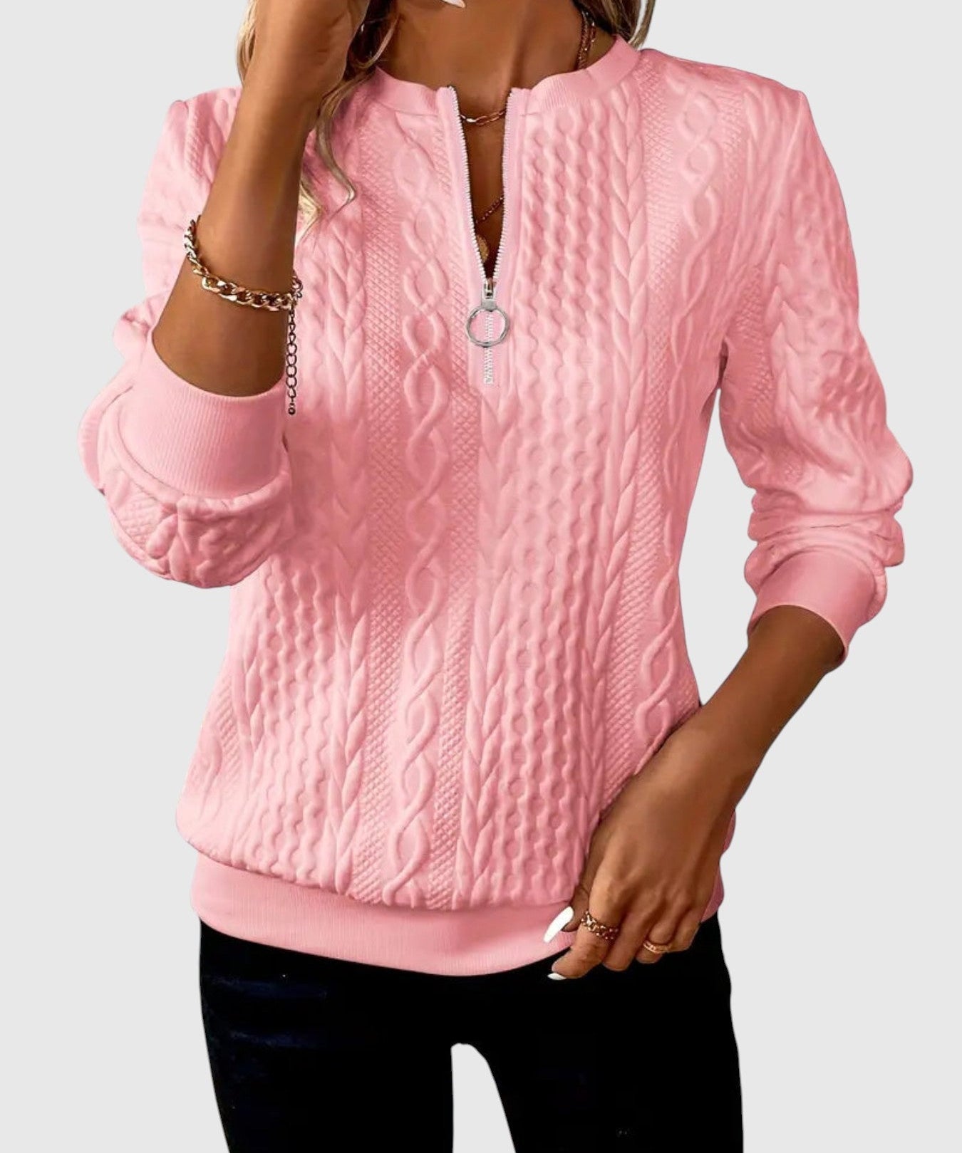 Amalie - Pletený sveter s copánkovým vzorom na zips