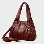 Impozantná dámska kabelka cez rameno v hlbokej bordovej farbe, navrhnutá tak, aby poskytovala eleganciu a pohodlie pri každom vašom outfite. Vyrobená z odolnej vysoko kvalitnej ekokože, vyniká moderným dizajnom a elegantnými detailmi na prednej strane. Dve dlhé ucha umožňujú pohodlné nosenie na ramene, zatiaľ čo odnímateľný popruh ponúka možnosť použitia aj ako crossbody. Vonkajšie vrecká so zipsom poskytujú praktickosť a jednoduchý prístup k nevyhnutnostiam.